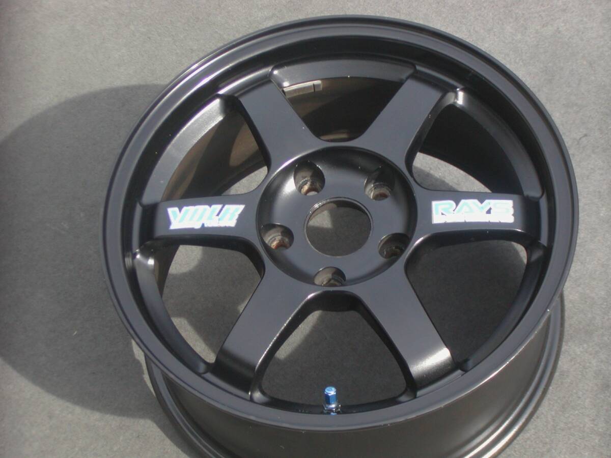 OEM RAYS Volk Racing TE37 16inch 7.5J +43 5x114.3 wheels, repainted black by specialist, minor rim touch-ups.
