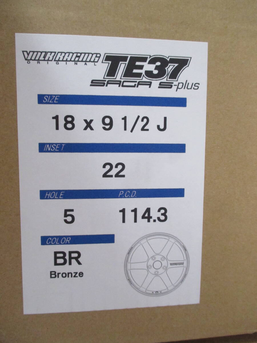 Brand new RAYS Volk Racing TE37 SAGA S-Plus wheels, forged 1-piece construction. Size 18x9.5 +22, PCD 5x114.3, hub diameter 73.1mm. Finished in Bronze (BR). Includes air valves. Price is for a set of four wheels.